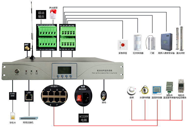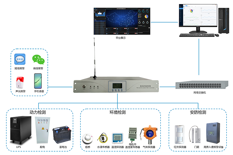 動環主機是一款集動力環境監控功能及入侵防盜報(bào)警於(yú)一體的設備,可實時監測機房、基站等場所的動力設備運行狀态、環境參數、入侵報(bào)警,如市電、UPS、蓄電池、溫濕度、煙霧、漏水 、門禁