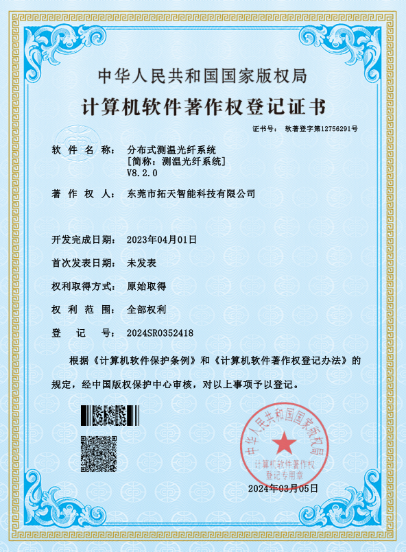分布式測(cè)溫光纖系統國(guó)家版權局計算機軟件著作